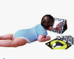 - Görsel izlemeyi teşvik etmek için çıngıraklar, oyuncaklar ve aynalar kullanın